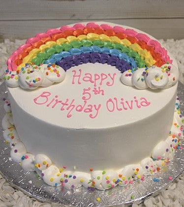 White buttercream frosting with a rainbow deisgn.