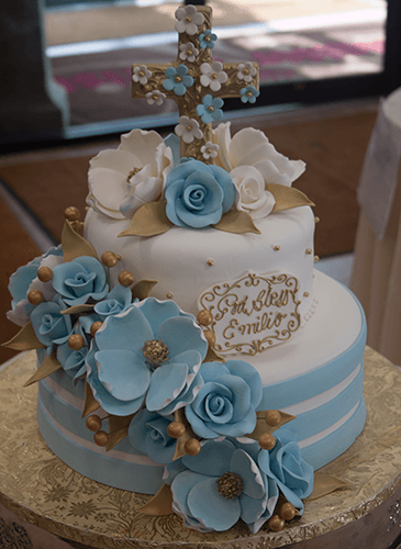 Elegant Blue & Gold Religious Cake