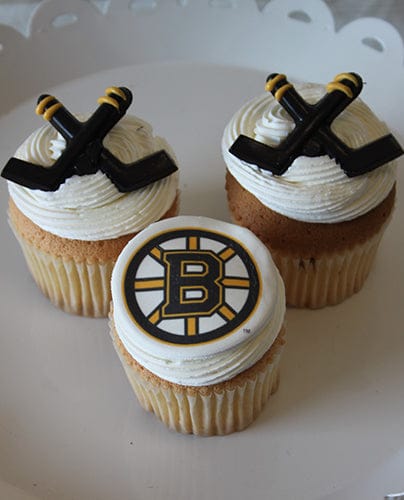 Bruins logo and chocolate hockey sticks