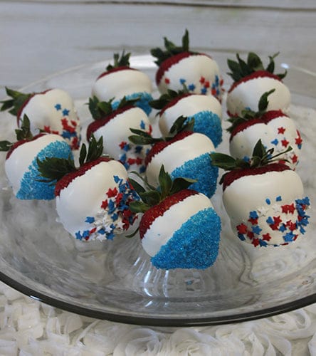 White dipped strawberries with Fourth of July decor