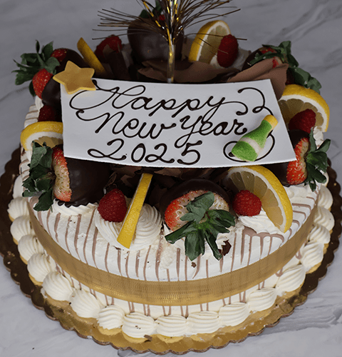Lemon Raspberry cake with New Year’s decorations.